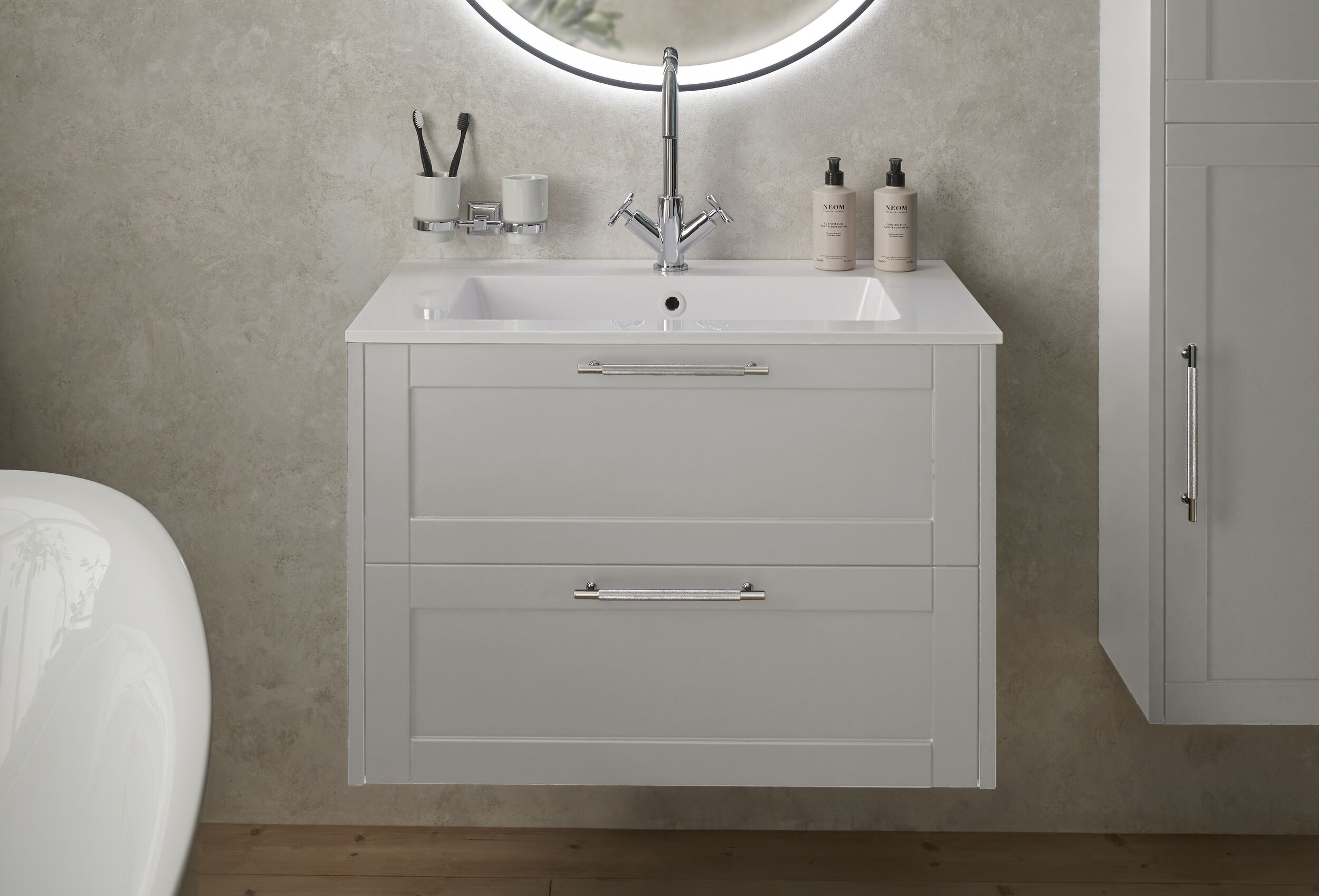 A curved profile such as our Wilton vanity unit will feel softer and less intrusive than a sharp corner, perfect for when space is tight.