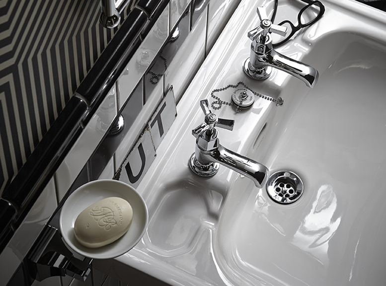 Coordinate these with the rest of your suite, using matching bath and tap handles as well, for a perfectly cohesive design. Gracechurch taps feature an elegant, slightly flat spout that widens at the end, adding a contemporary touch to the bold lines that inspire art deco design. These taps are available in chrome, or with a limited-edition mother of pearl handle, adding that all-important extra detail that draws the eye and captures the elegance of the period. The Gracechurch bath shower mixer, with a detailed shower handset set above the bath taps, is another easy way to add a touch of traditional glamour to your suite.